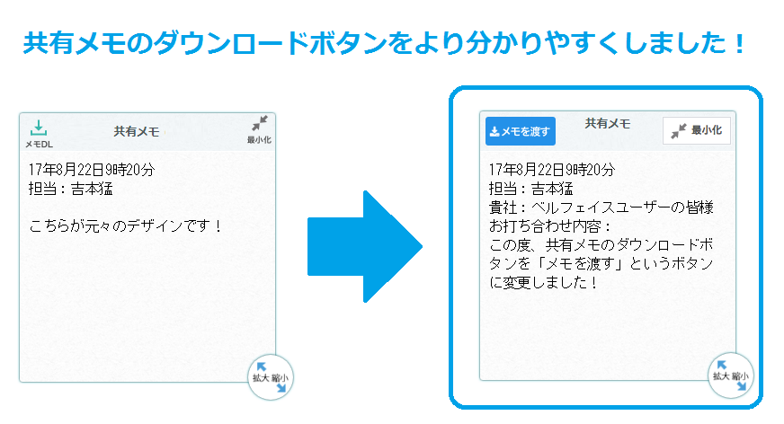 接続中のやりとりを双方で記録する「共有メモ」。そちらの「ダウンロードボタン」のデザインをより分かりやすいボタンデザイン、表記に改善しました。