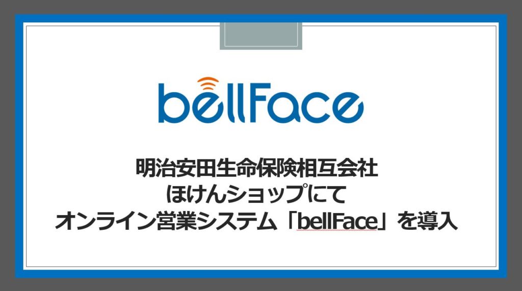 オンライン営業システム「bellFace(ベルフェイス)」の開発・販売事業を行う、ベルフェイス株式会社(本社:東京都渋谷区、代表取締役:中島 一明、以下ベルフェイス)は、明治安田生命保険相互会社(以下、明治安田生命保険)が、オンライン接客推進化に向け、bellFaceを店舗(ほけんショップ)向けに7月6日(月)より導入したことをお知らせします。