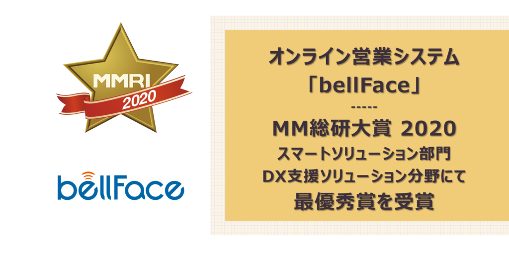 オンライン営業システム「bellFace(ベルフェイス)」がMM総研大賞2020 スマートソリューション部門 DX支援ソリューション分野にて最優秀賞を受賞