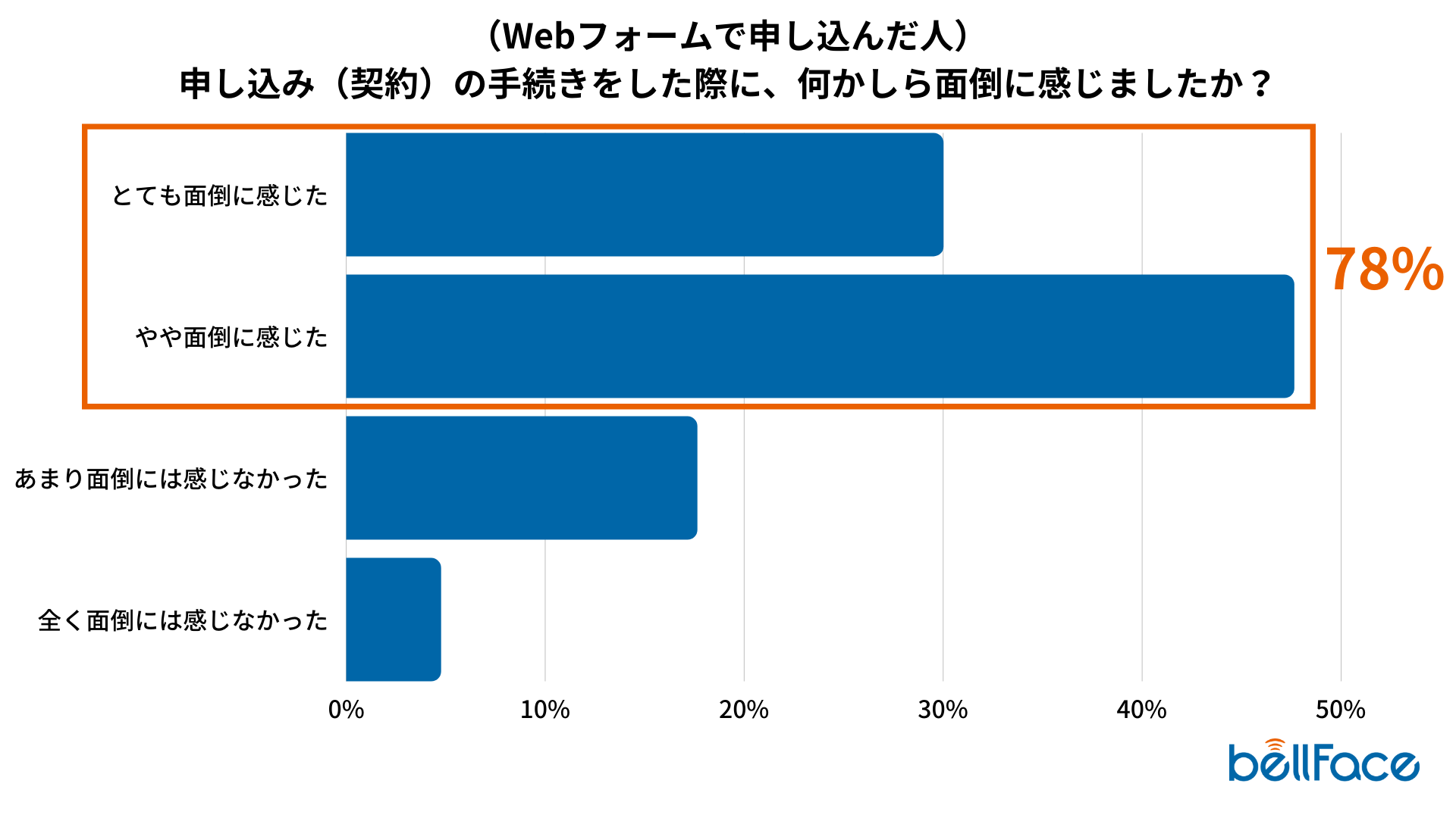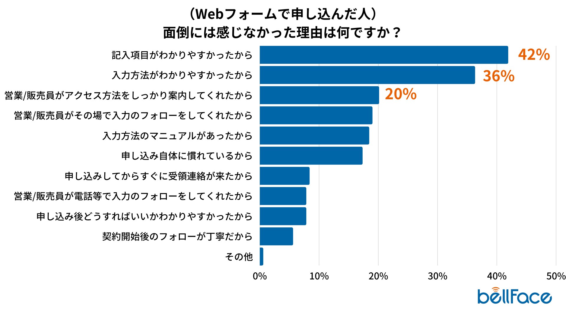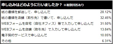 “Webフォームで申し込んだ人”は、自宅など営業/販売員がすぐにフォローできない環境で手続きを行っているケースが多いため、“紙の書類で申し込んだ人”に比べると低いですが、それでも3番目に多く、20%という結果になりました。