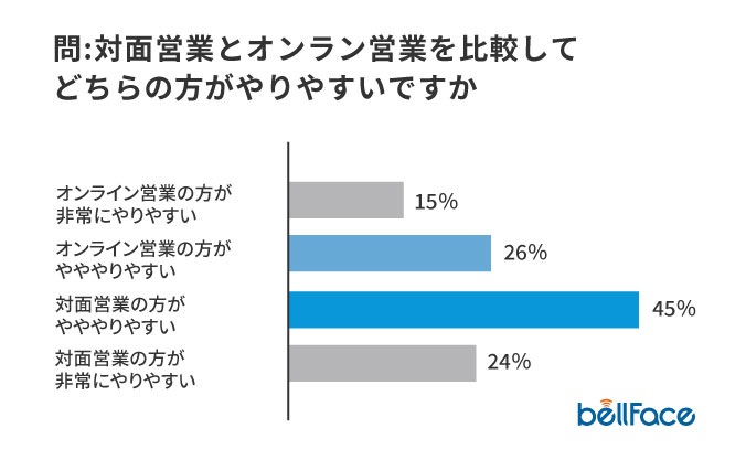 一方、「やりやすさ」の面でいうと、オンラインを1年以上経験しても多くの人が「対面のほうがやりやすい」と考えていることがわかります。