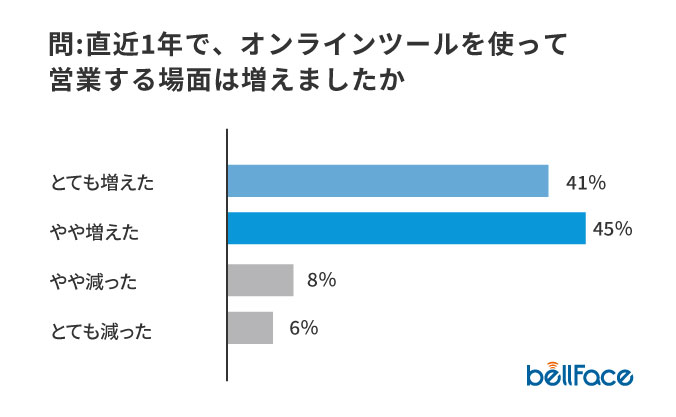 • ・オンライン営業をする場面は「増えた」が86%