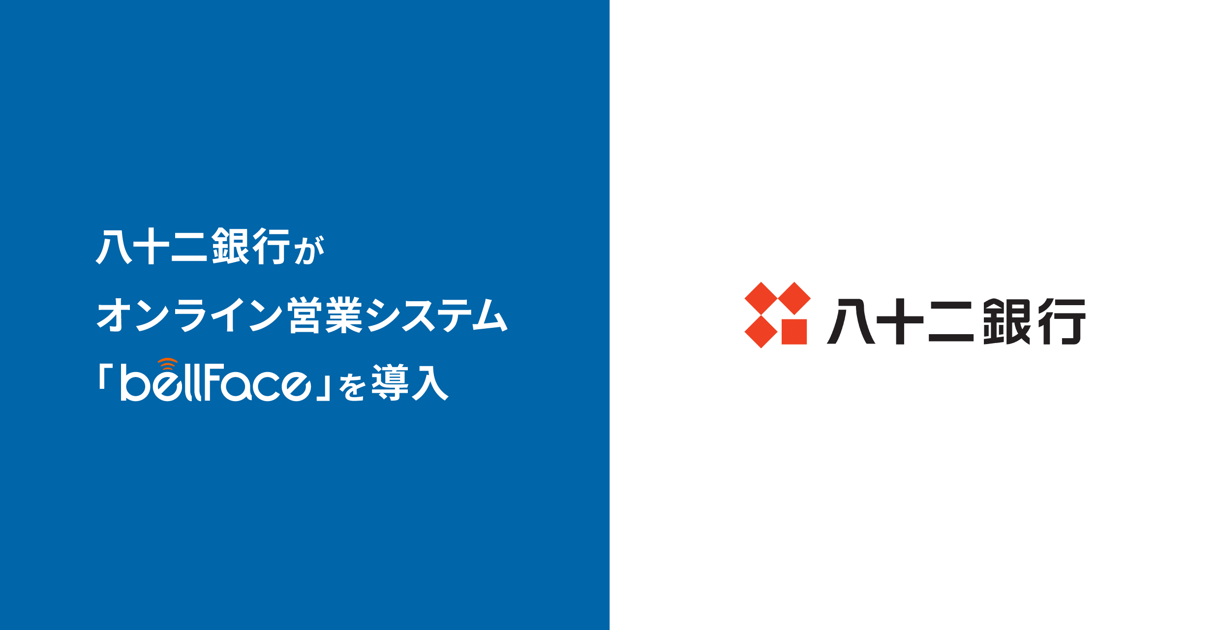 オンライン営業システム「bellFace(ベルフェイス)」の開発・販売事業を行う、ベルフェイス株式会社(本社:東京都渋谷区、代表取締役:中島 一明、以下「ベルフェイス」)は、株式会社八十二銀行(取締役頭取:松下 正樹)が「bellFace」を活用したオンライン面談を開始することをお知らせします。