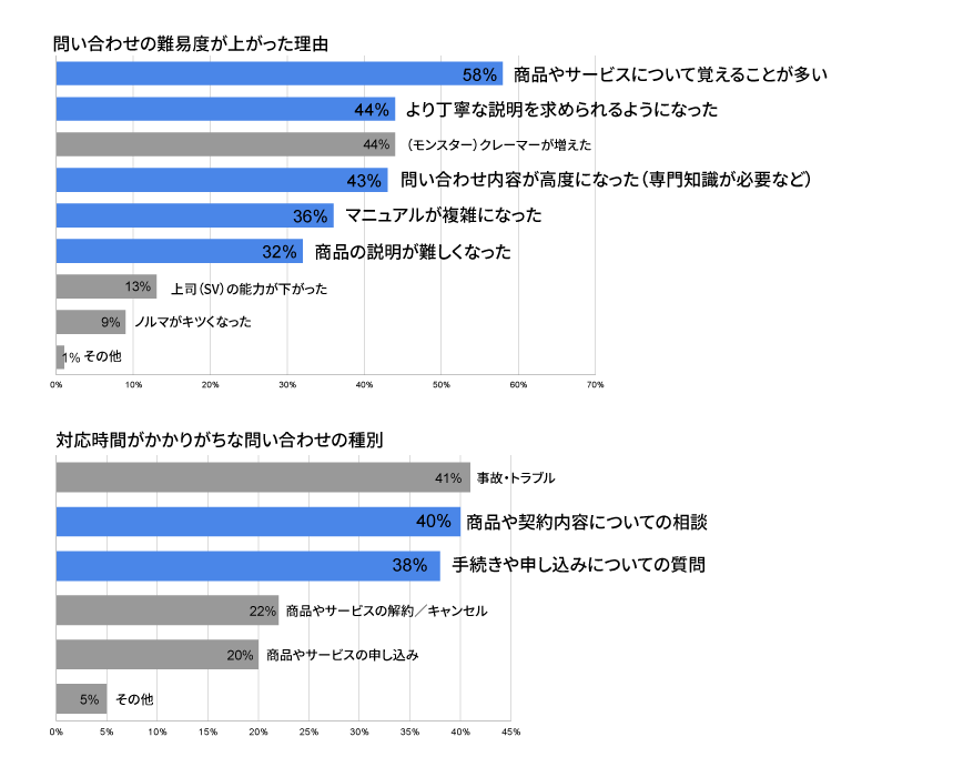 では、「問い合わせの難易度が上がった理由」は何でしょうか。上位の回答は、「クレーマーが増えた」を除き、