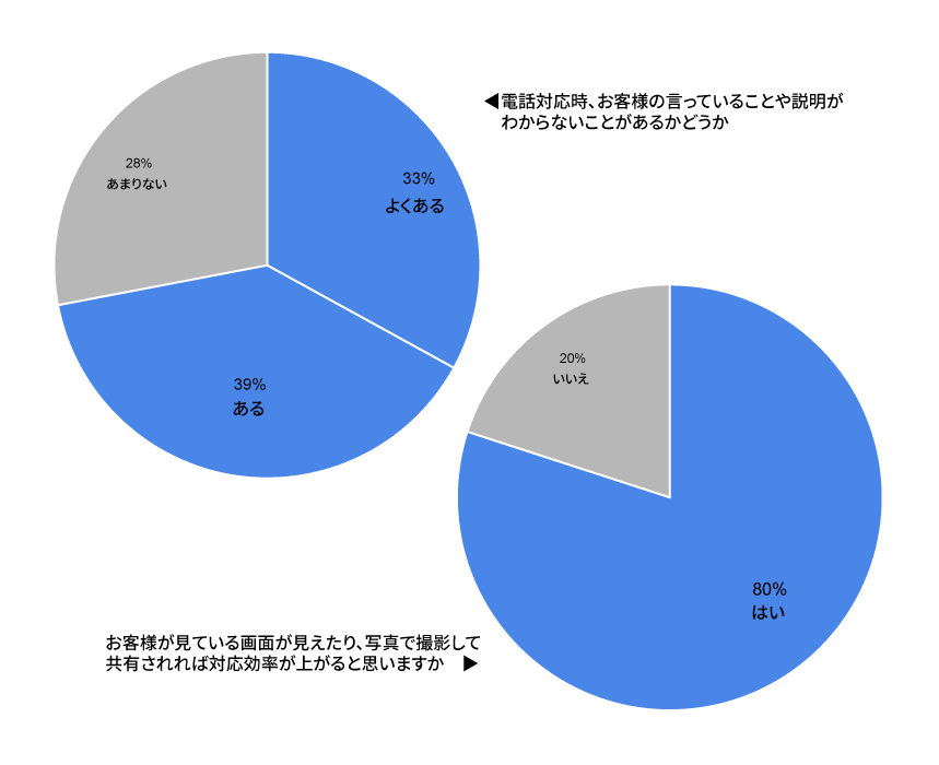 実際、「お客様が見ている画面が見えたり、写真で撮影して共有されれば対応効率が上がると思いますか」との問いに対して、80%が「はい」と回答しています。