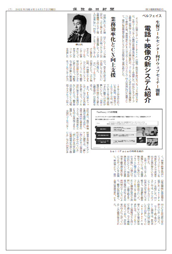 10月17日(月)発行の保険毎日新聞 7面にて、当社主催ウェブセミナーの開催レポートが掲載されました。