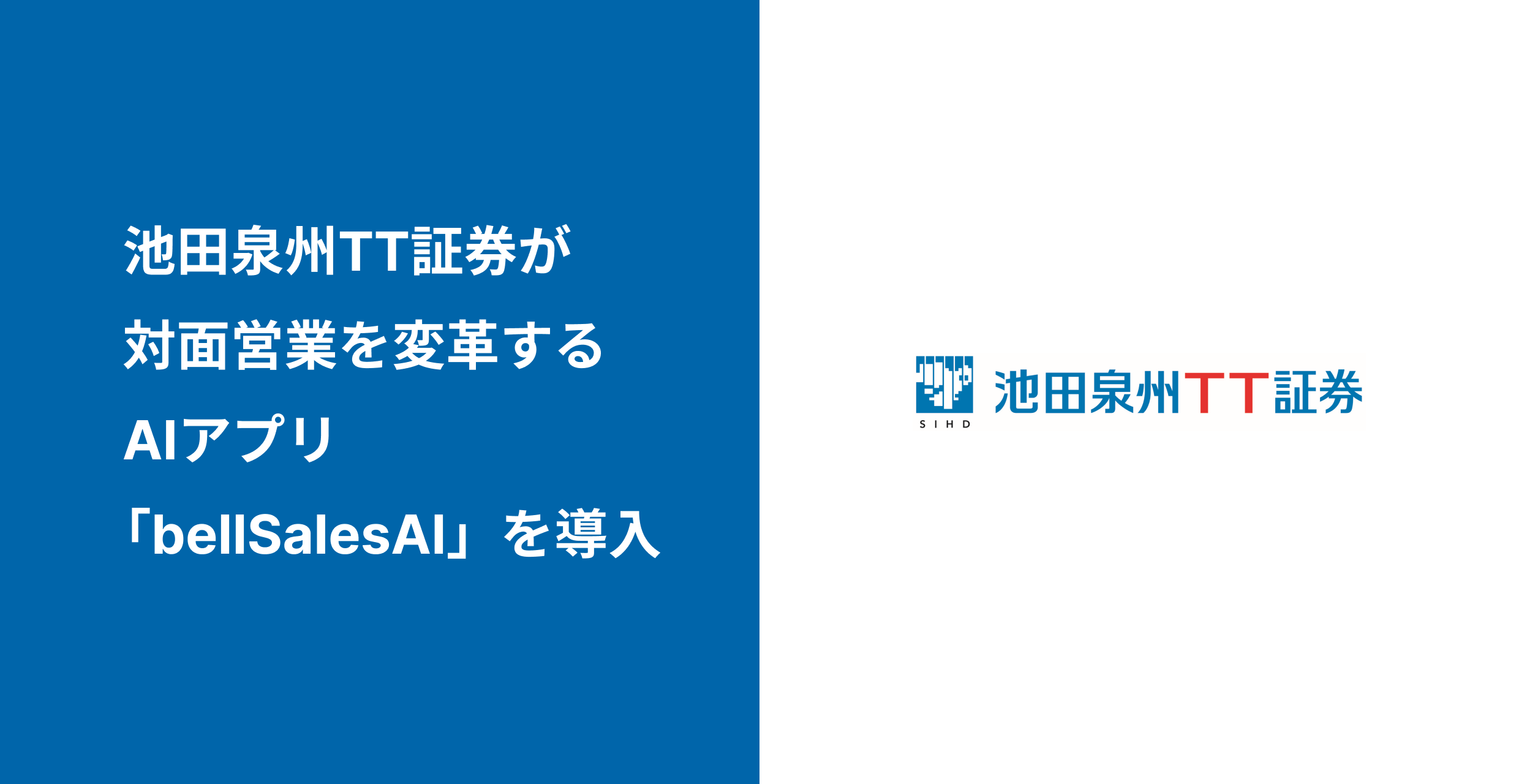 対面営業を変革するAIアプリ「bellSalesAI(ベルセールスエーアイ)」の開発・販売を行うベルフェイス株式会社(本社:東京都港区、代表取締役:中島 一明、以下ベルフェイス)は、池田泉州ホールディングス(社長CEO 鶴川 淳)の子会社である池田泉州TT証券株式会社(社長 井上 基)が「bellSalesAI」の利用を開始することをお知らせします。証券会社での導入は今回が初となります。